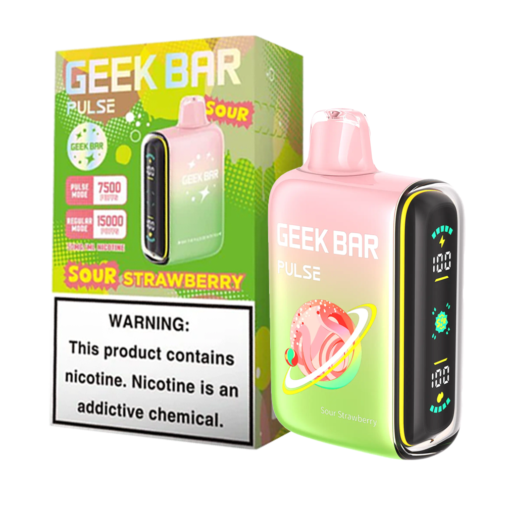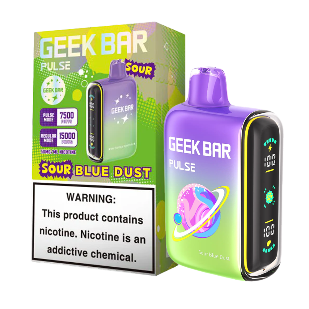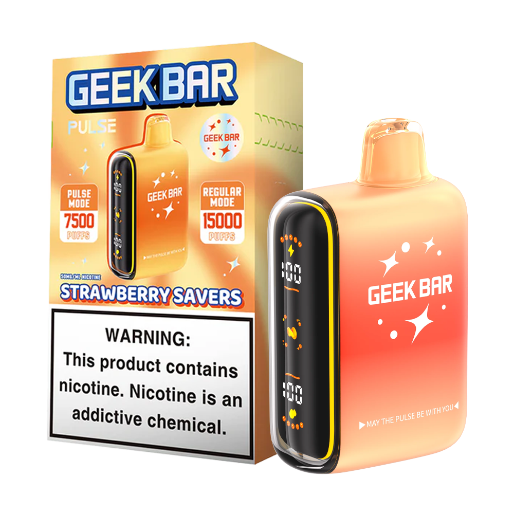 Geek Bar Pulse 15K disposable 7500 puff in Pulse Mode. 15000 puffs in Regular Mode. 50mg Nicotine Level.