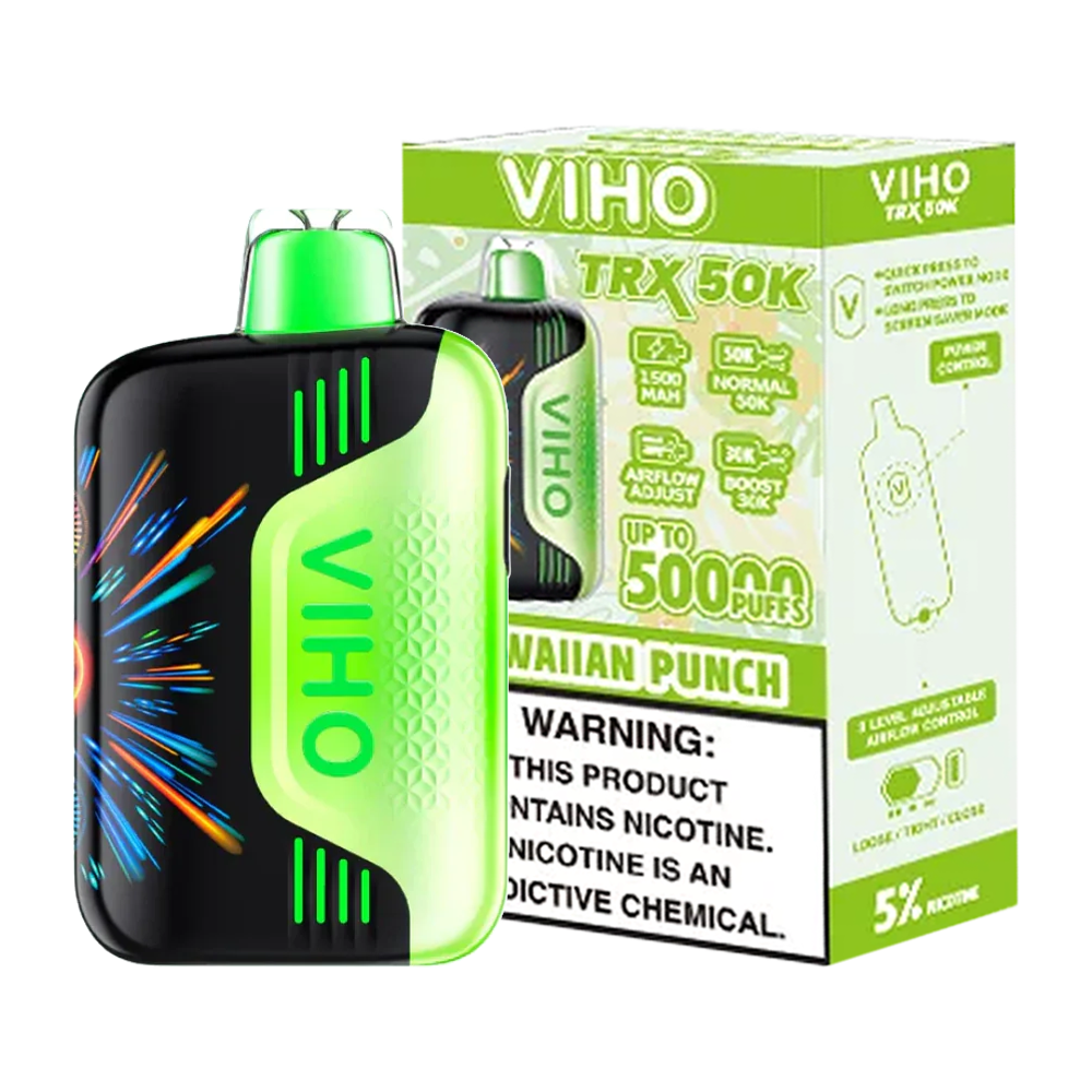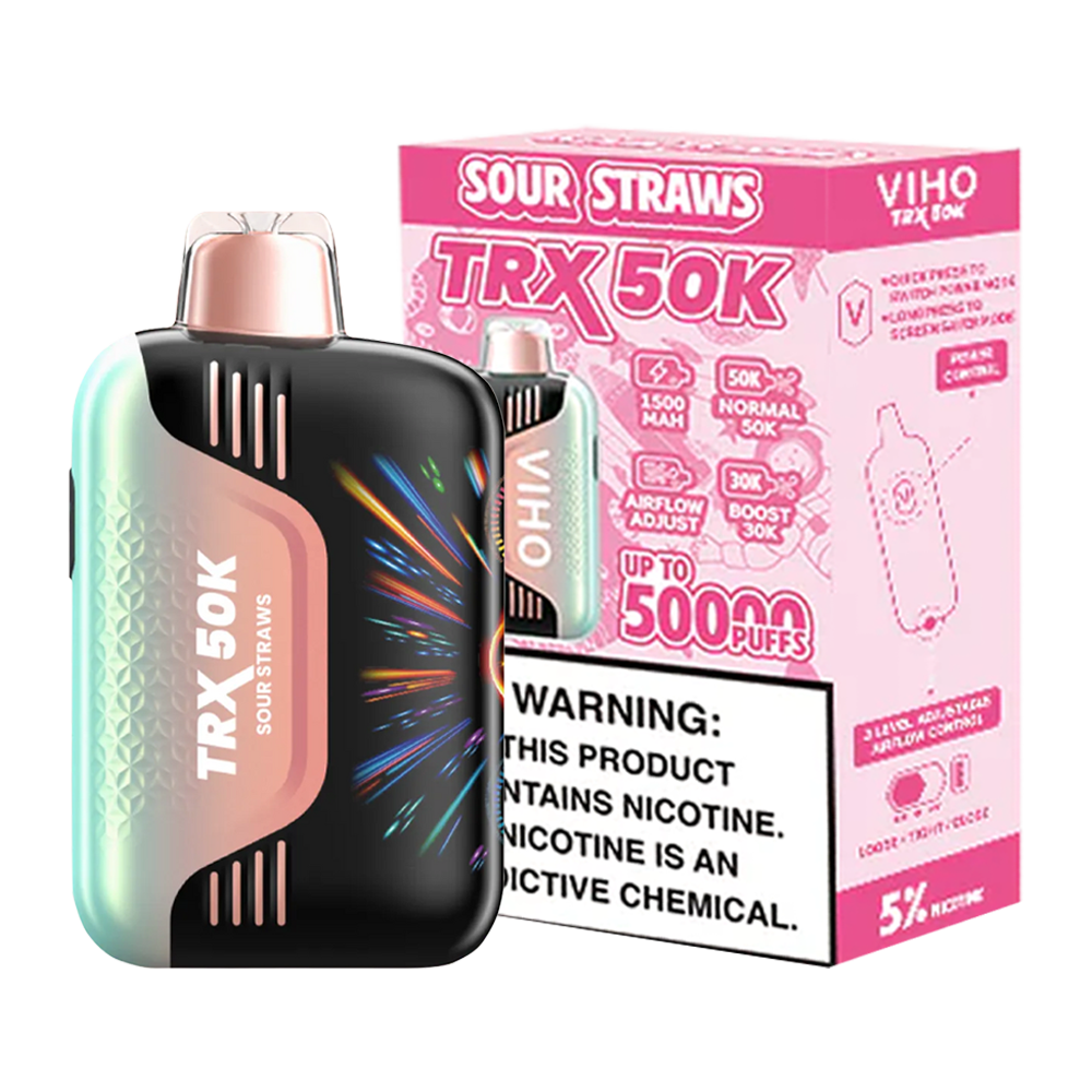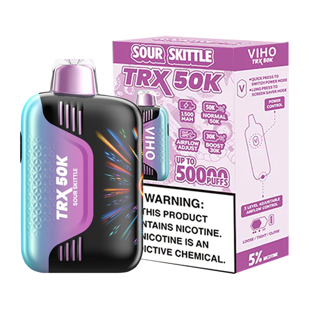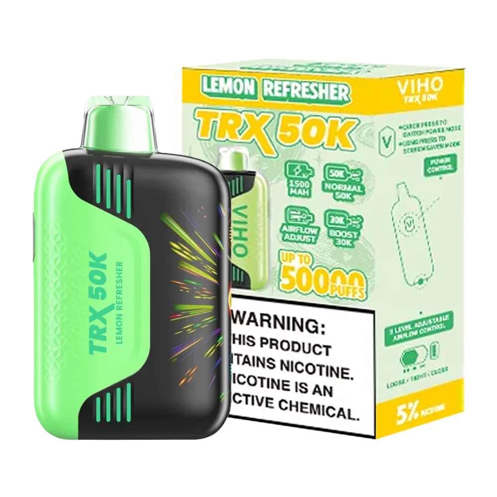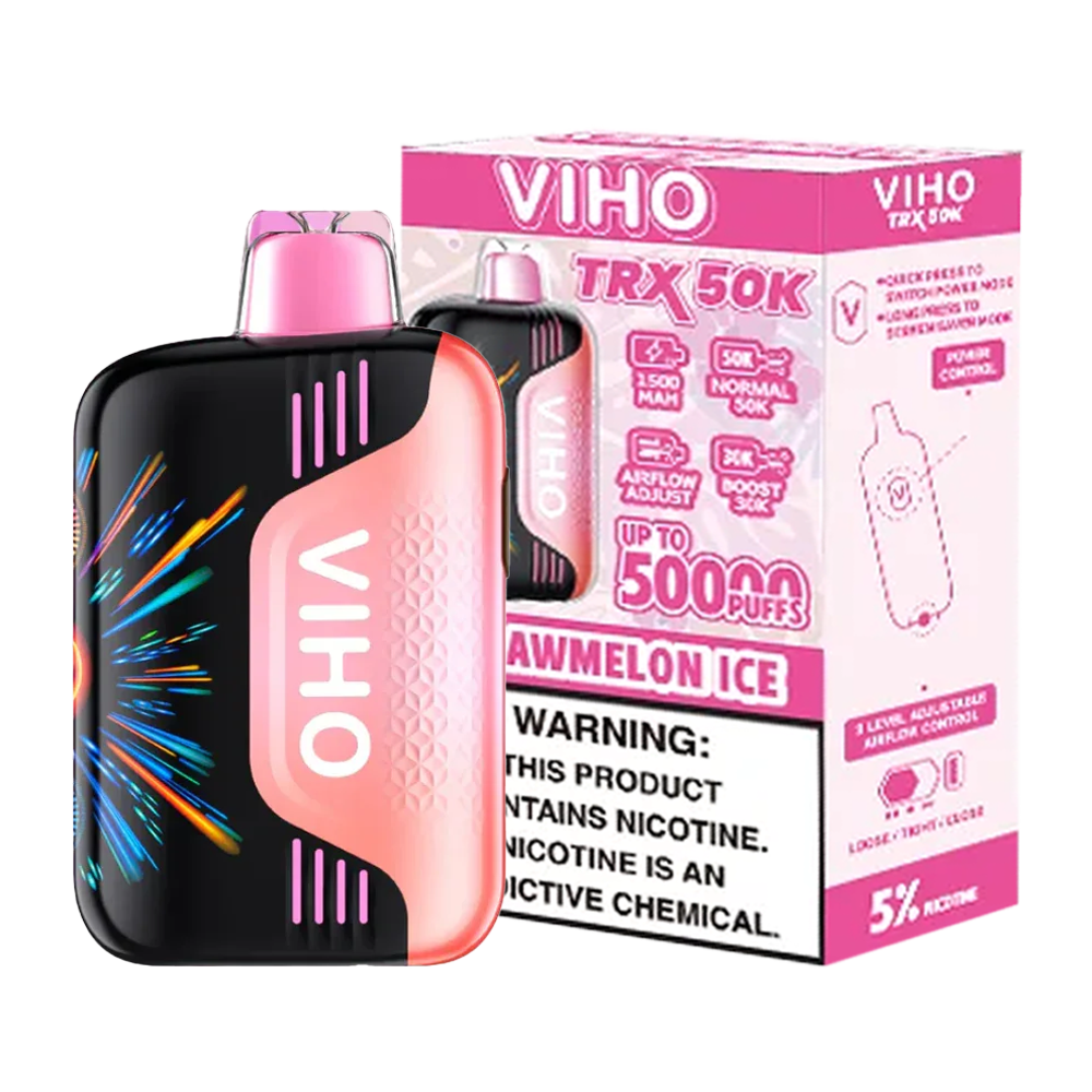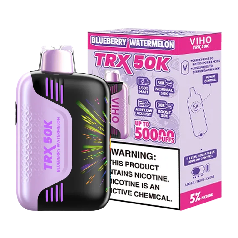 Viho TRX 50K nicotine disposable- offering smooth flavor, fits in hand comfortably, light up display screen to show battery power and vape juice levels. 5000...
