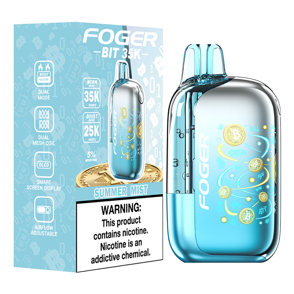 Foger disposable nicotine vaporizer 35K, provides a unique smoking experience with its visible juice cartridges, sleek design, & premium vape flavors. 35K puffs on Normal...